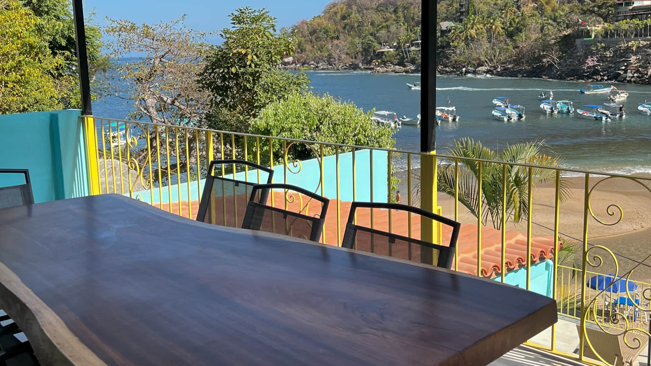 Chicky's Paradise is a two-part rental located in the heart of Boca de Tomatlán, Jalisco, just steps away from the ocean. Boasting breathtaking ocean and mountain views, this two-bedroom villa + studio property has everything you need to spend unmatched quality time by the sea.